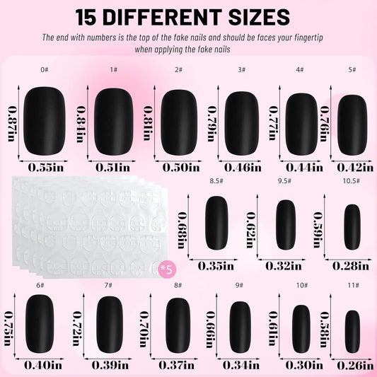 360Pc Square Press on Nails with Glue Tabs, Medium Squoval Artificial Nails Black Acrylic Press Ons